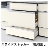 ロングスライド引出しだから奥までしっかり収納、出し入れも簡単です