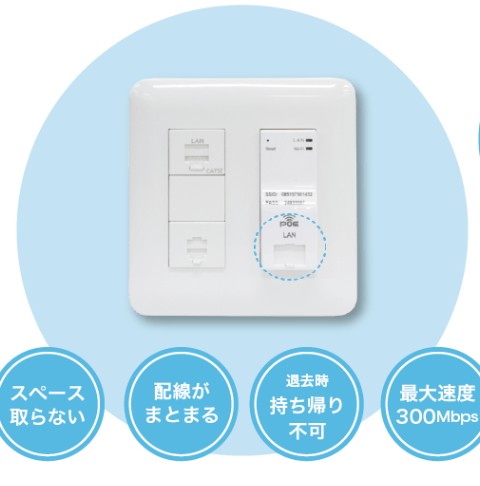 無線ルーターは、壁に埋め込式の超小型無線ルーターなので、とてもすっきりしています。