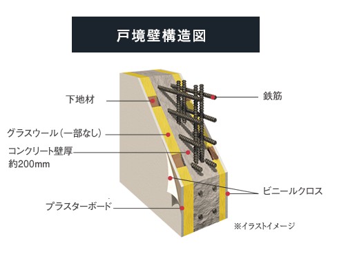 プロスパーグランデの戸境壁(隣の部屋との間の壁)は200mmです。