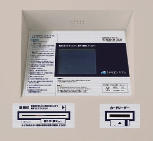 ・入力には操作性を考慮した音声ガイダンス付の「6インチ」タッチパネル搭載・荷物の入庫を確認したら受領印を自動捺印・荷物の受取りには手軽に利用できる暗証番号方式を採用・ボックス内に保持された操作履歴で配達実績の確認ができるから安心